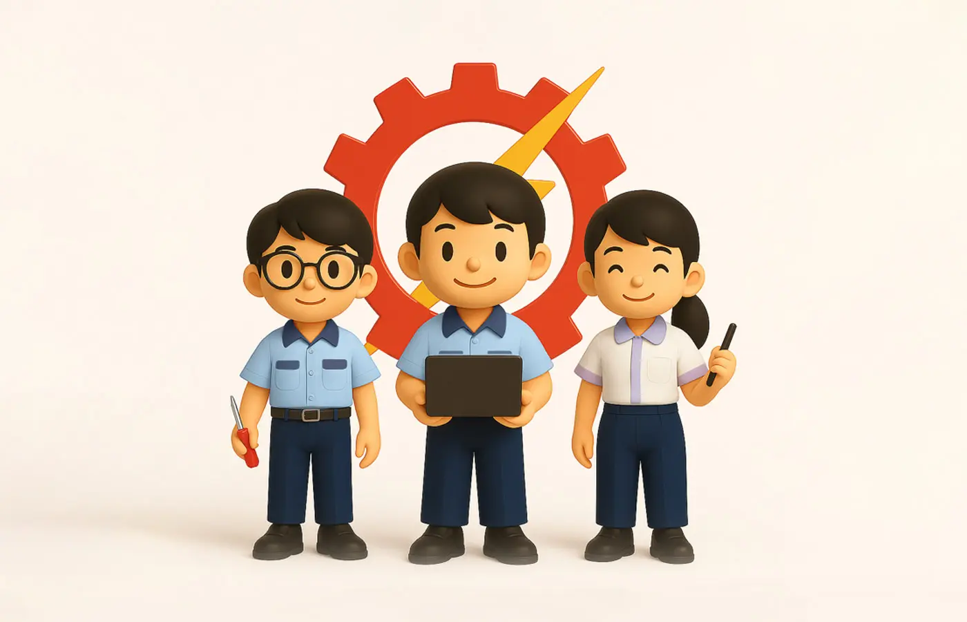 因此我們採用生成式 AI + 人工修正:以 ChatGPT 生成圓潤風格的 3D 學生角色,後續調整比例、表情、校徽與制服細節,最後匯出 WebP 並補齊無障礙標記。