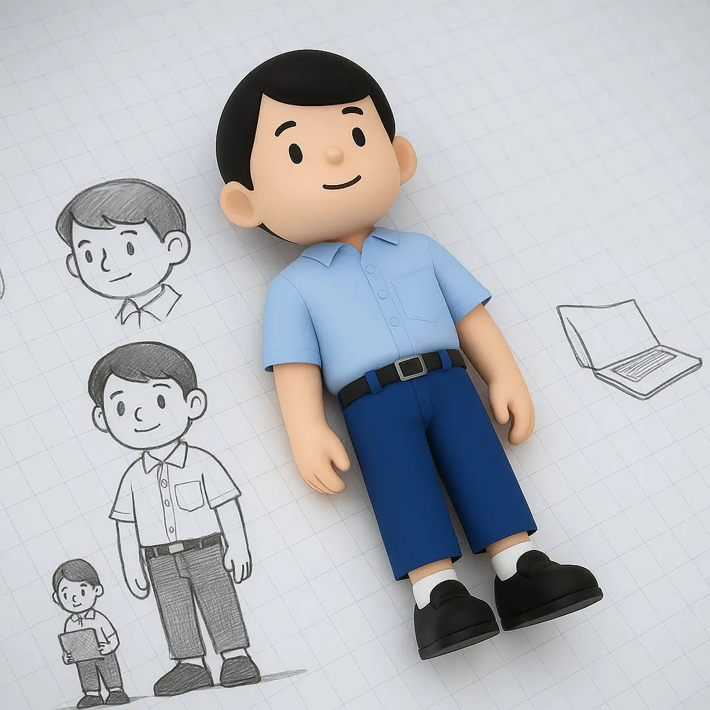 因此我們採用生成式 AI + 人工修正:以 ChatGPT 生成圓潤風格的 3D 學生角色,後續調整比例、表情、校徽與制服細節,最後匯出 WebP 並補齊無障礙標記。